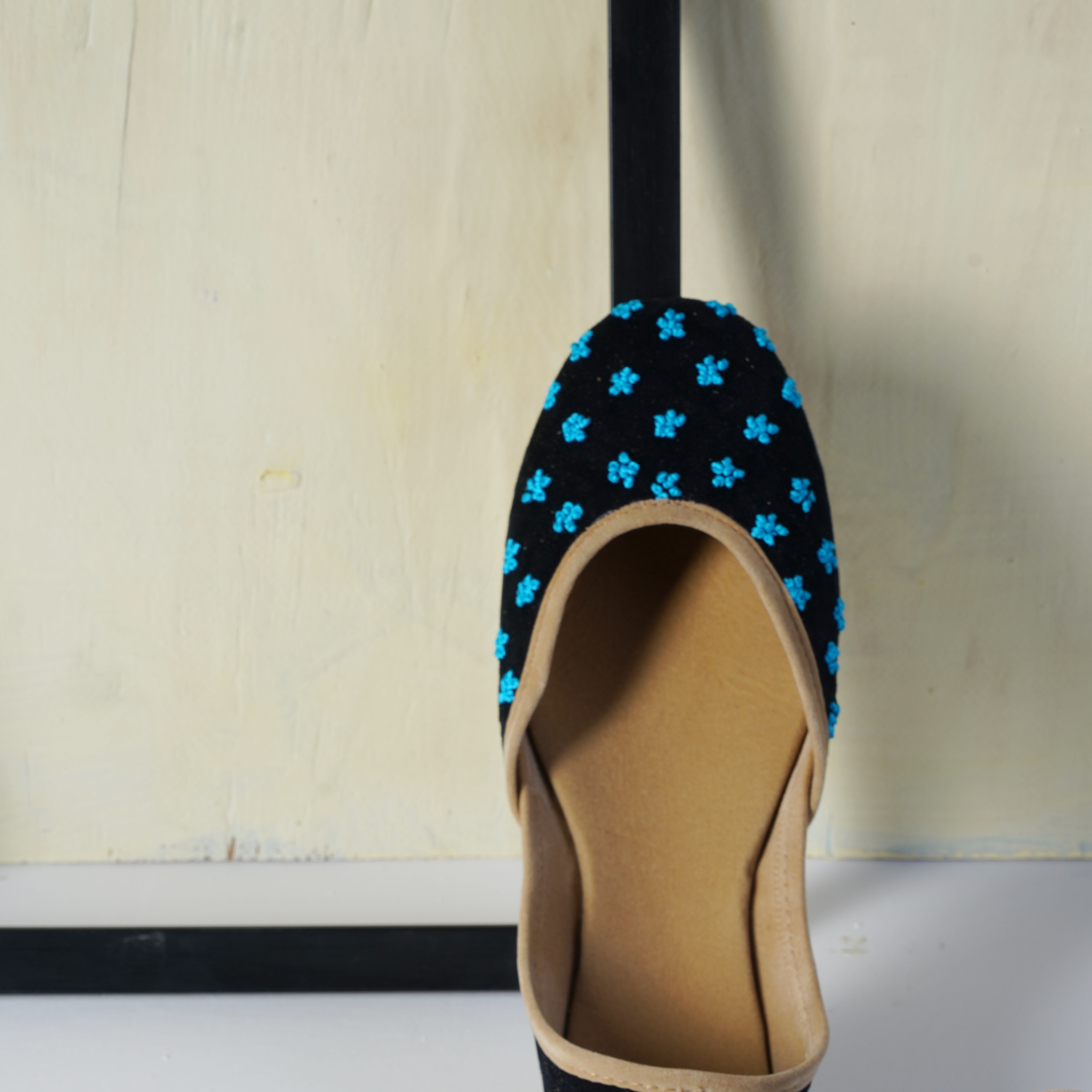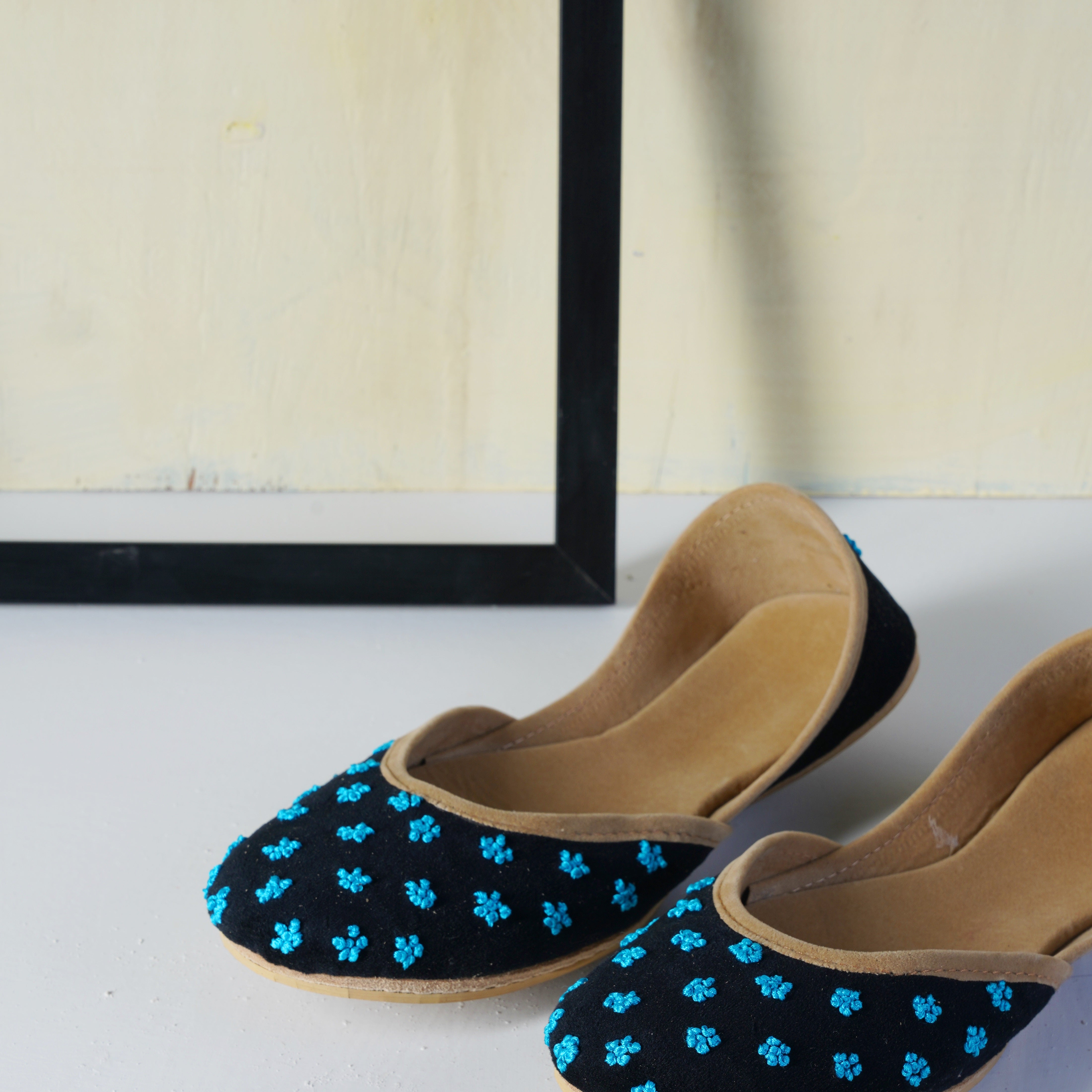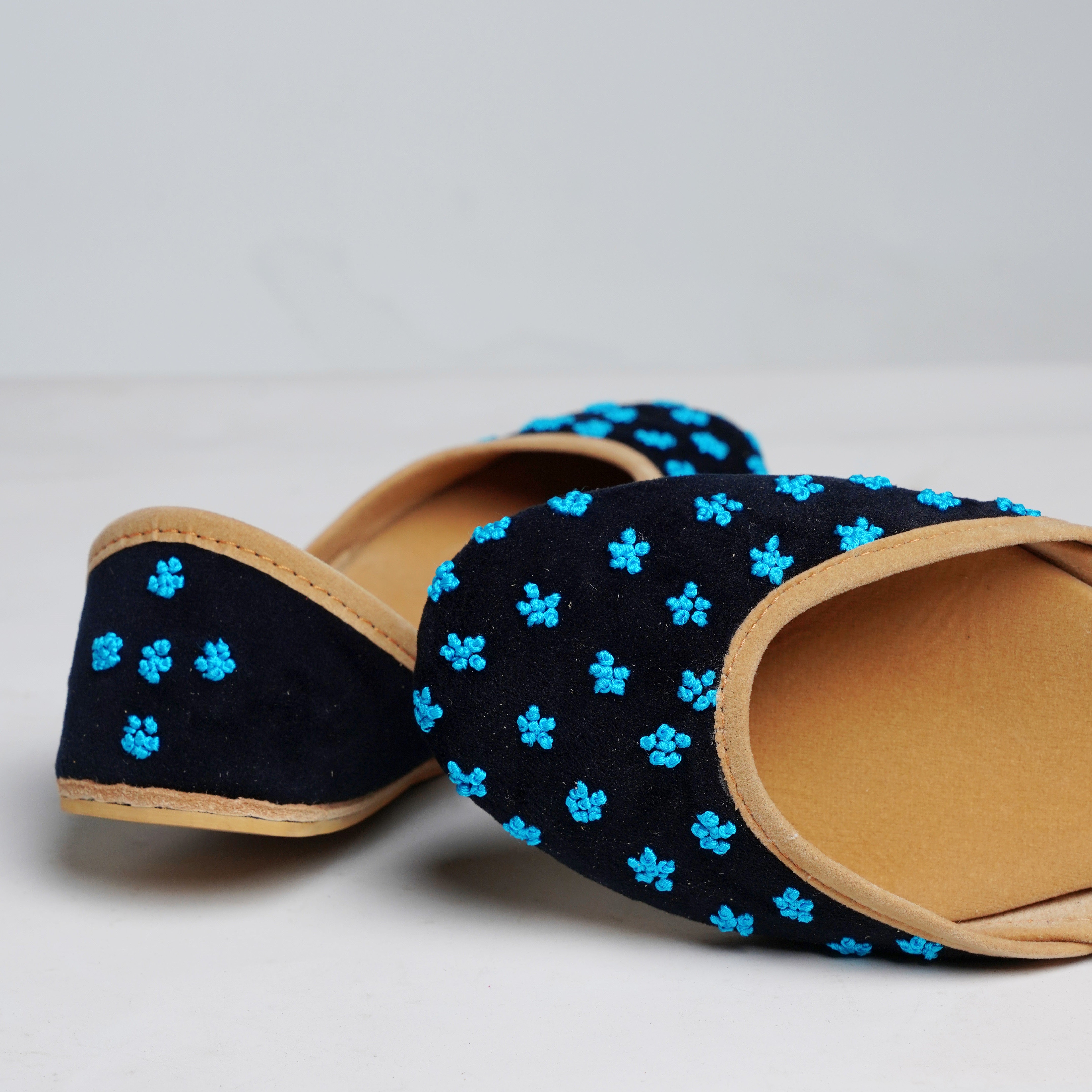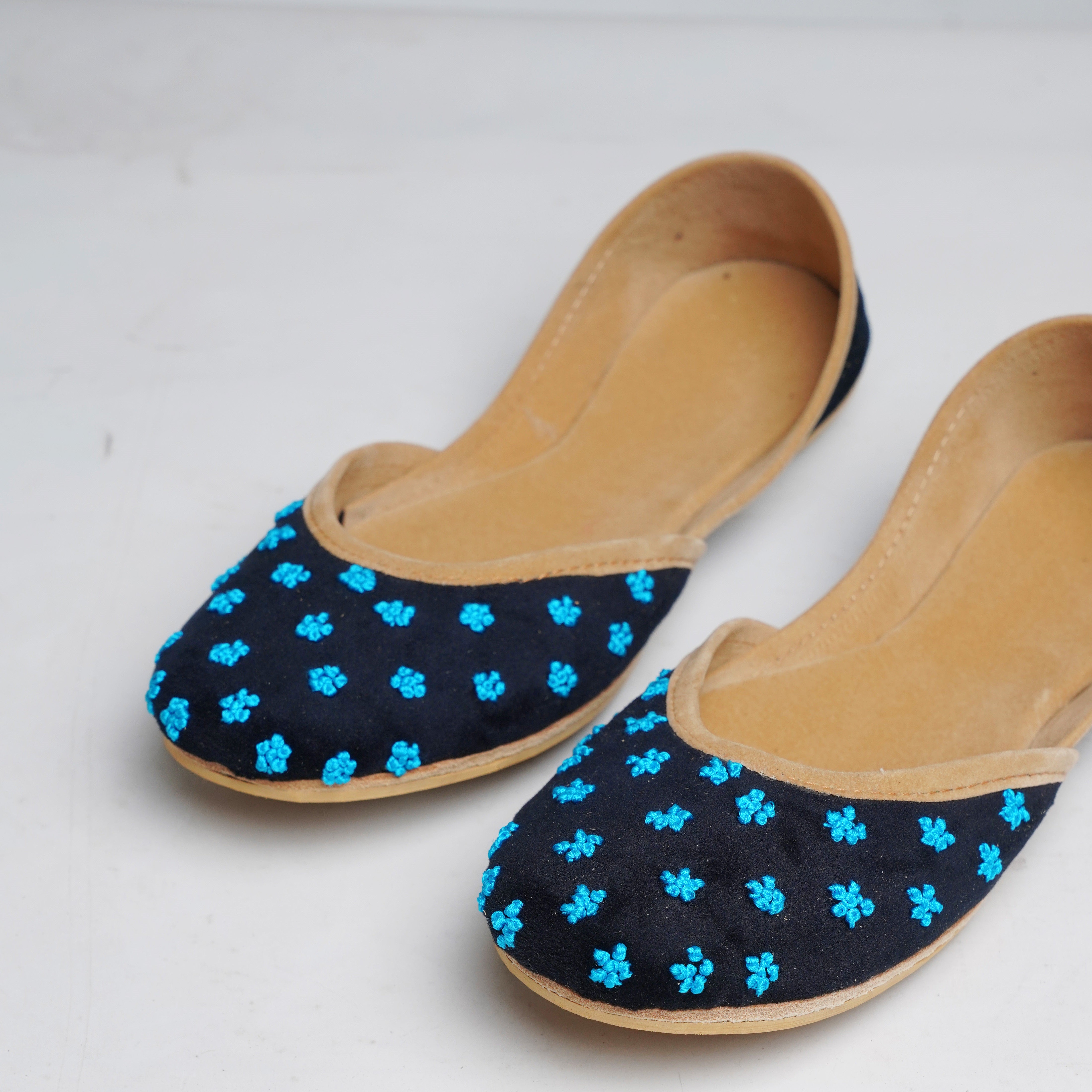 We value your comfort and aim to exceed your expectations in every way possible. Our team spends over 40 hours in designing and hand-making /Ballet Flat/Khussas for you to wear. Crafted with utmost care and premium materials, our Ballet Flats/khussas ensure a captivating design and superior comfort. The velvet base provides a plush and cozy fit, while the thoughtful construction guarantees a secure and comfortable wearing experience.