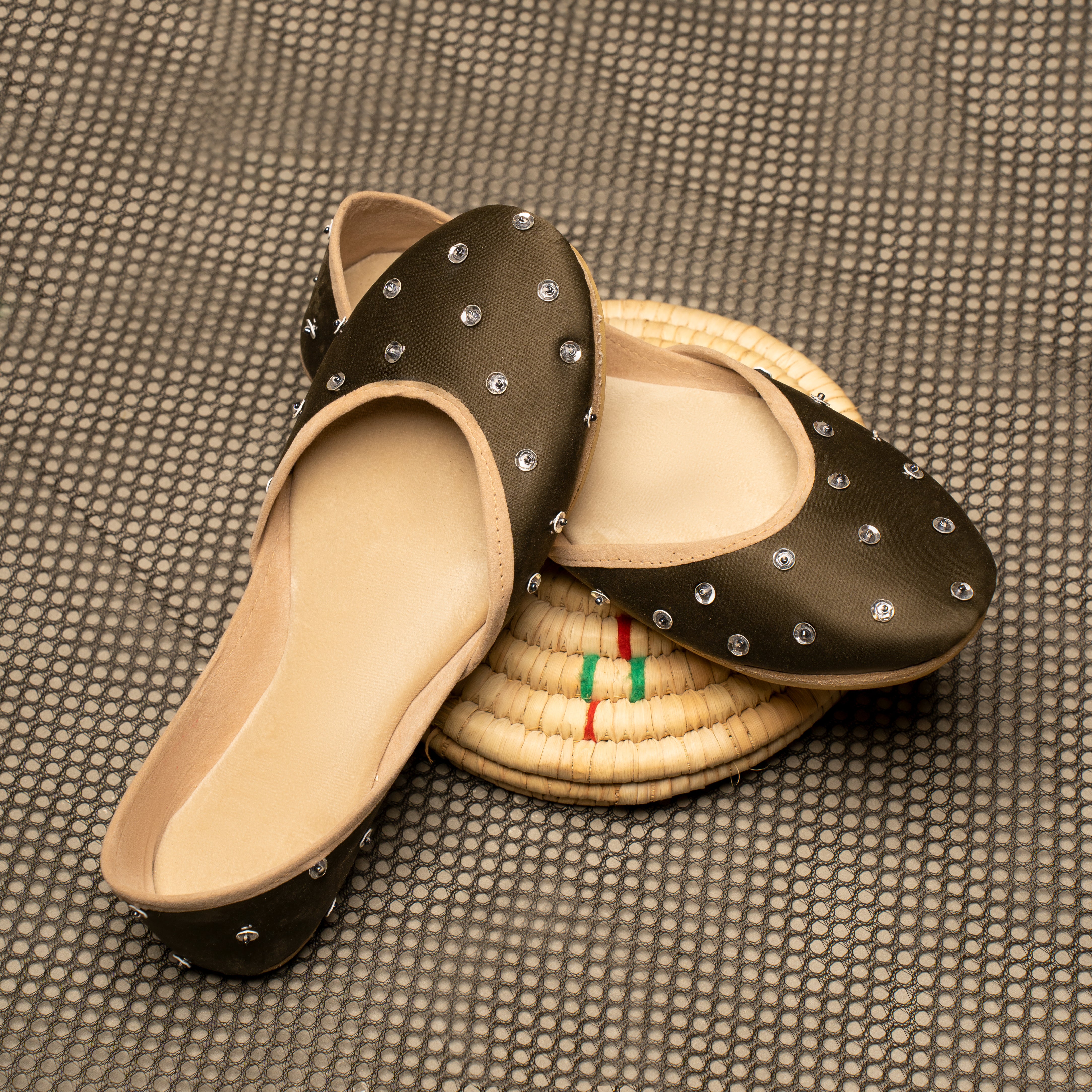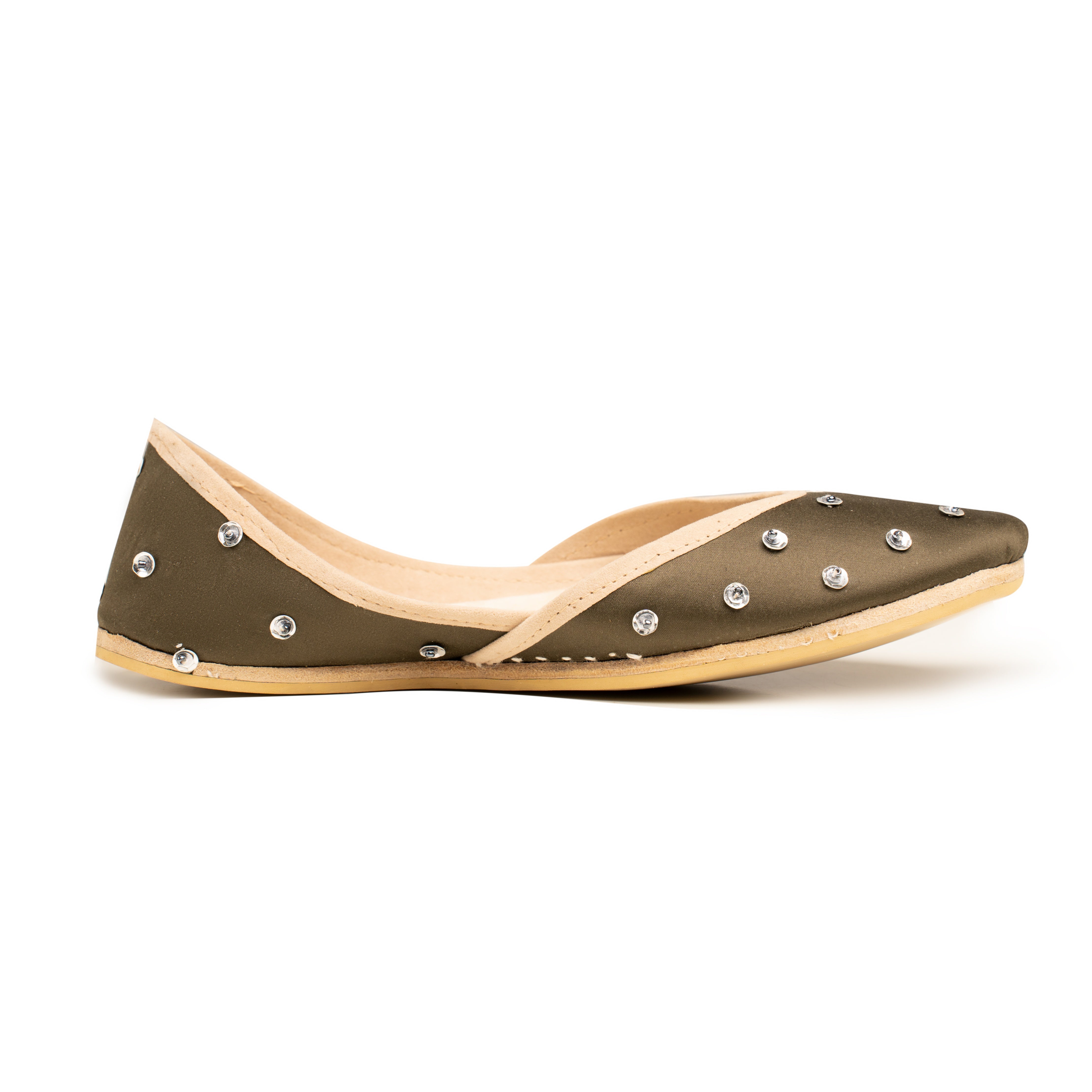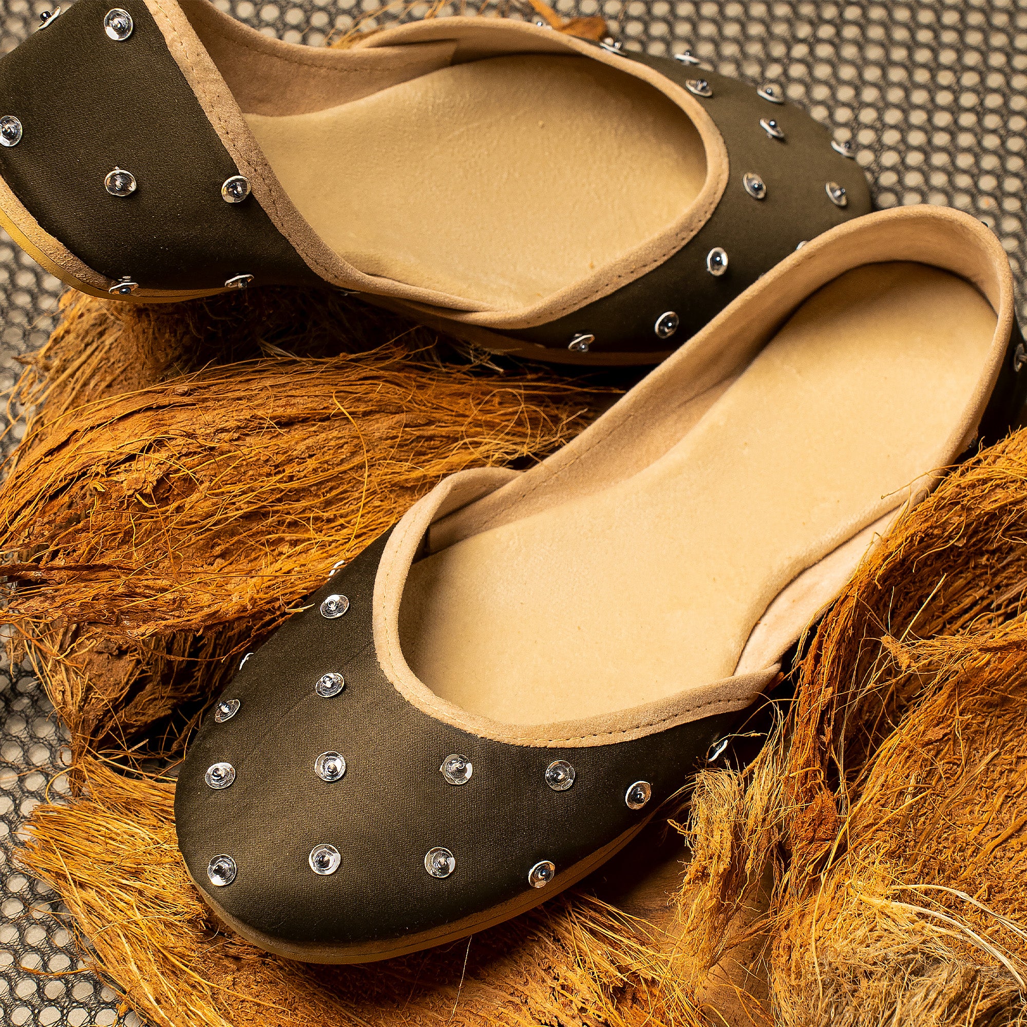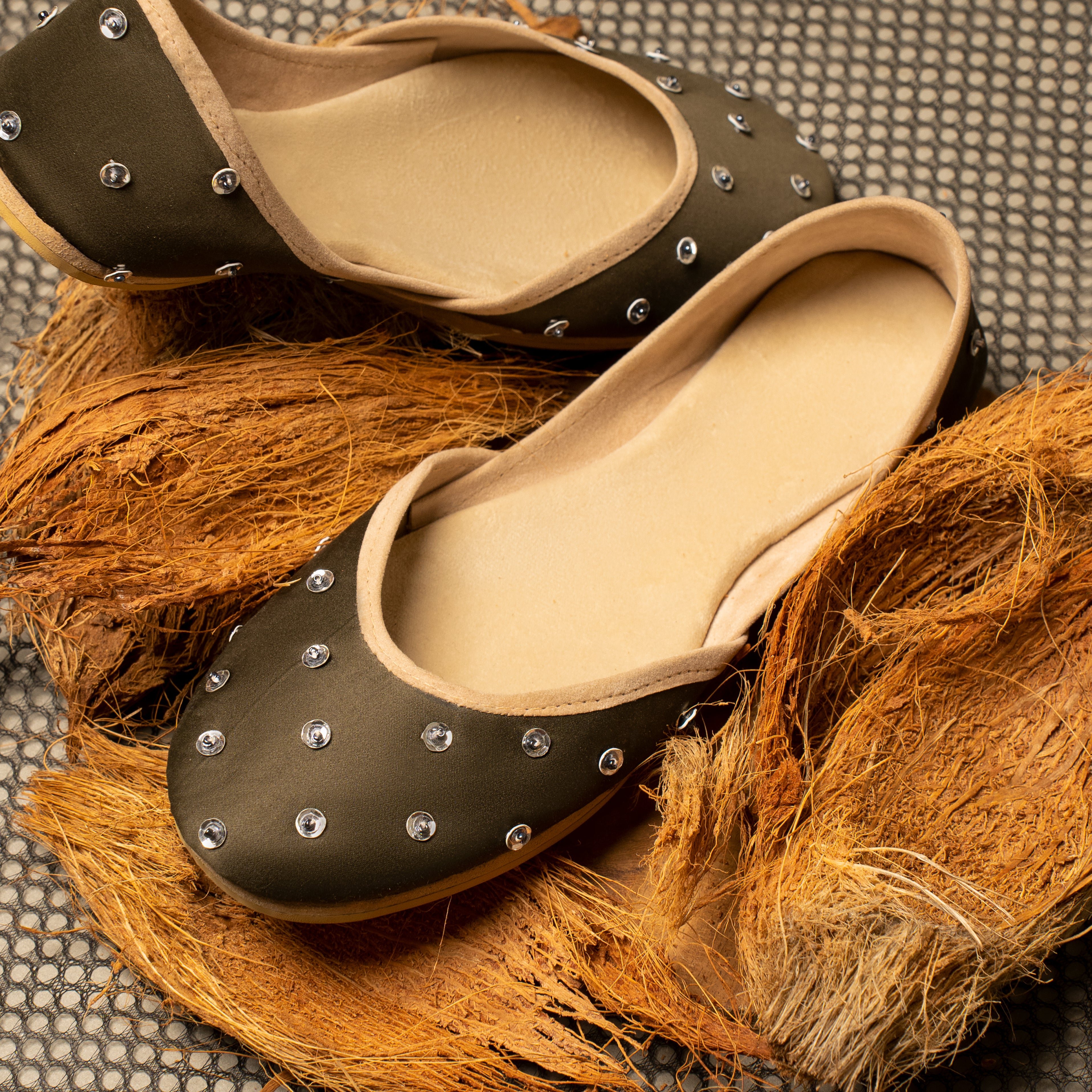 Introducing "Olive Eleganza" Shoes: Glistening Silver Sequins on an Earthly Canvas! The olive base sets the stage for a harmonious union between nature's beauty and sparkling embellishment. Its earthy tones evoke a sense of roundedness’ and tranquility, while the silver sequins add a touch of glamour and radiance. Each sequin is intricately hand-sewn onto the shoe, creating a mesmerizing play of light and shadow that will captivate all who gaze upon it. These stunning creations are a testament to the artistry and craftsmanship that goes into every pair. Adorned with shimmering silver sequins, they capture the essence of starlit nights, adding a touch of glamour and enchantment to your every step. The silver hues create a captivating interplay of light as if each step you take leaves a trail of stardust in your wake. These shoes are an invitation to embrace your inner diva and shine like a constellation in the night sky.