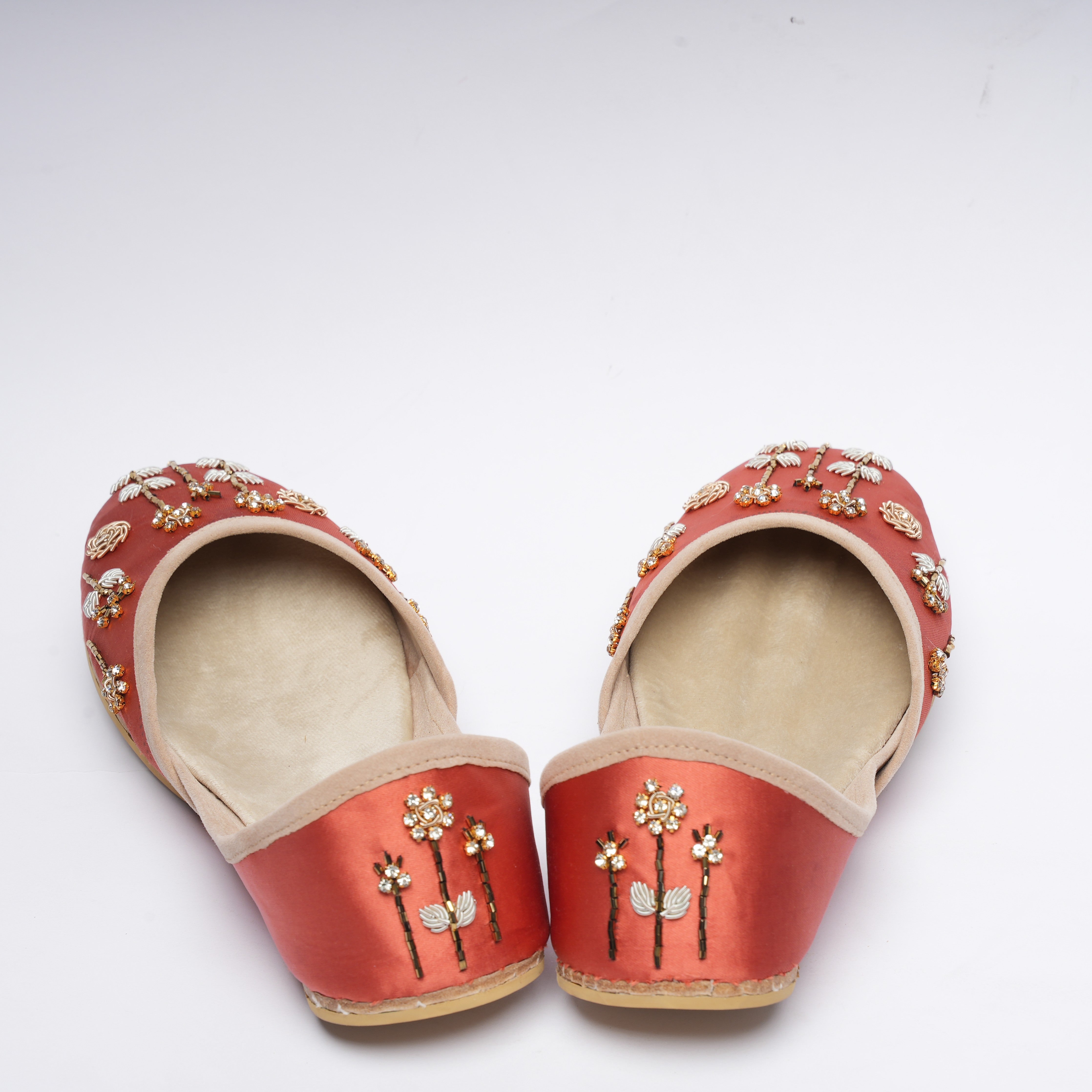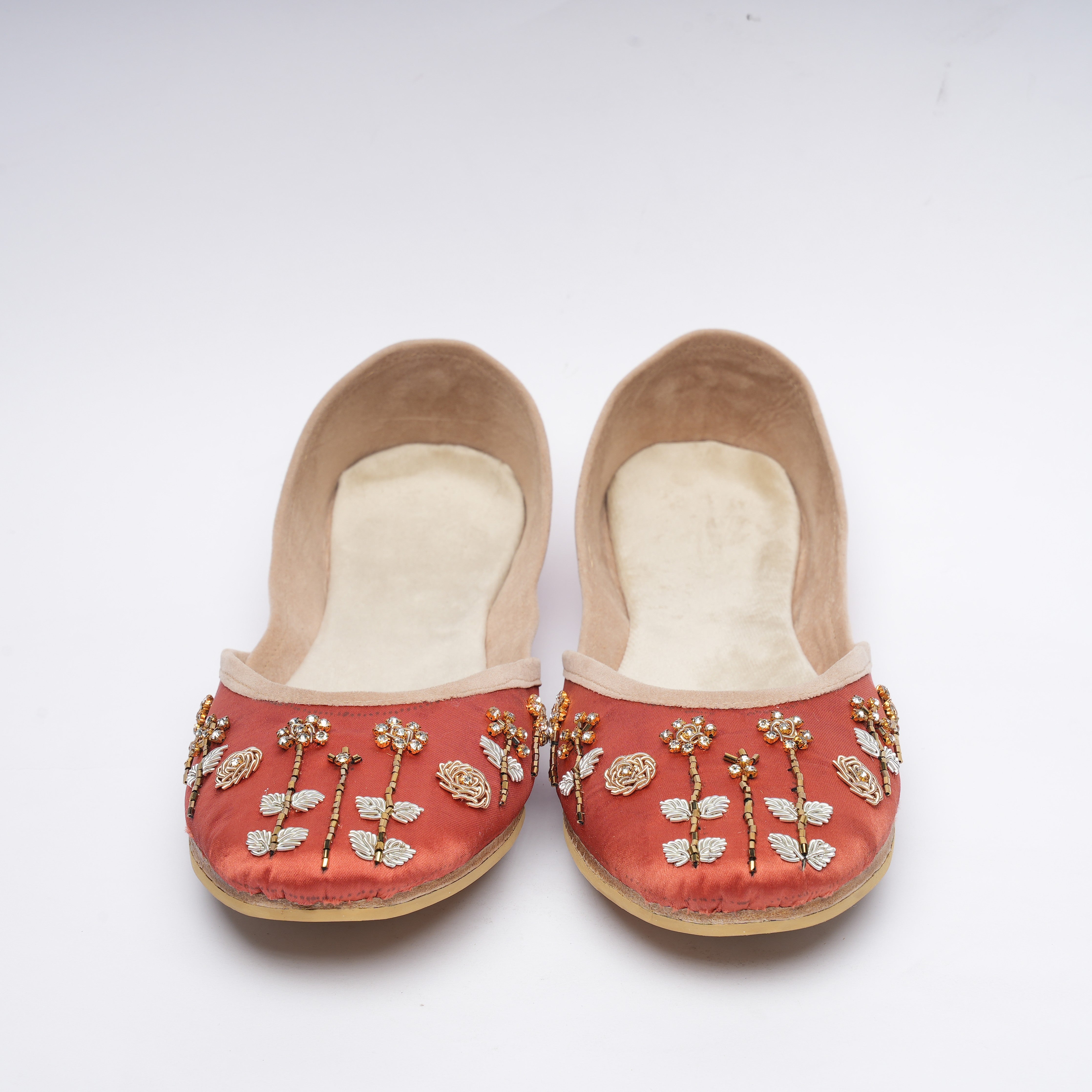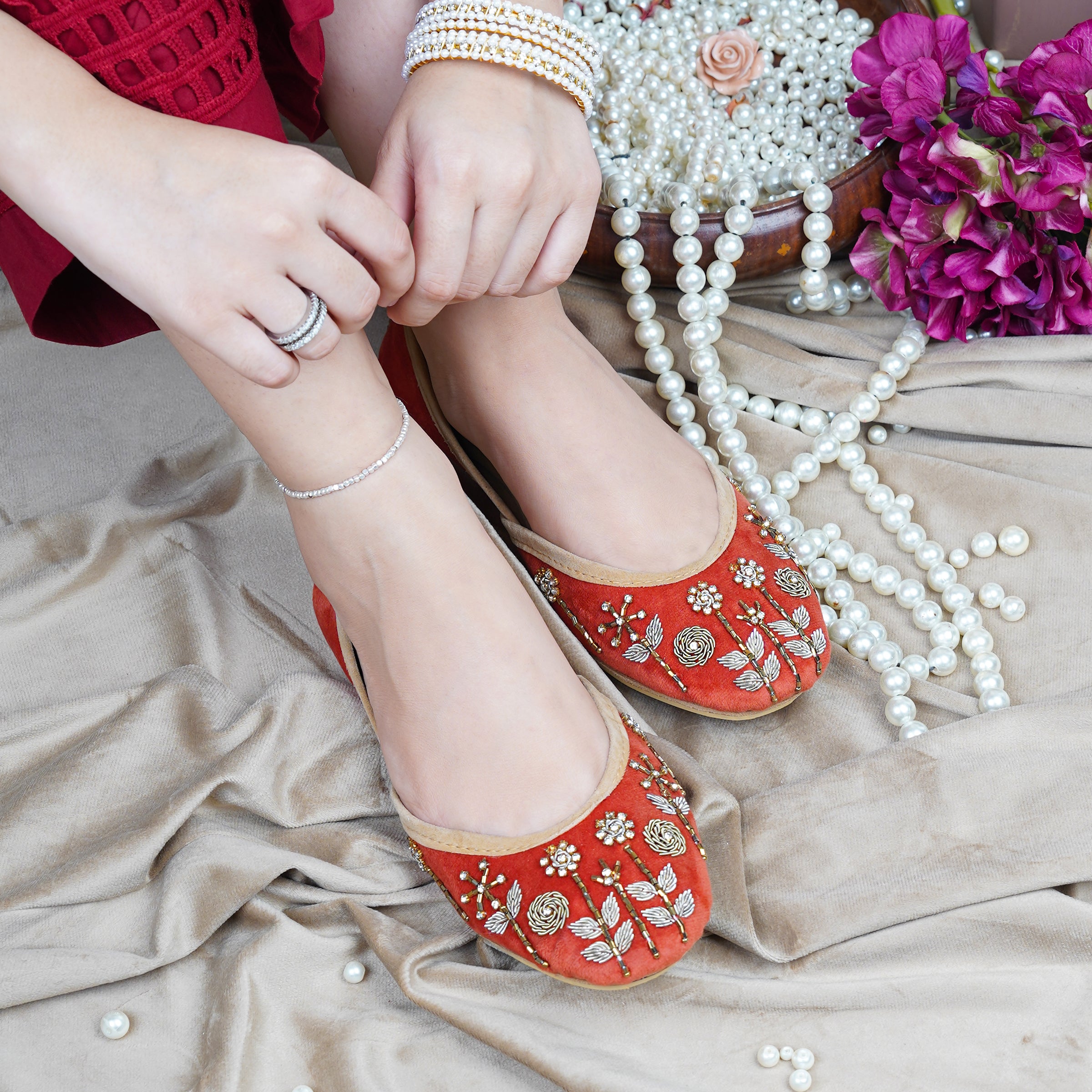 Crafted with top-quality materials, it is designed for all-purpose wear, ideal for any occasion or everyday use. The outsole is fashioned from premium rubber, ensuring not only comfortable walking but also slip resistance, providing added safety and peace of mind. This khussa/ Ballet flat is built to last, fashioned from pure hand processed leather that will withstand the test of time. The inner sole features a luxurious velvet lining, making it incredibly comfortable and snug for your feet.