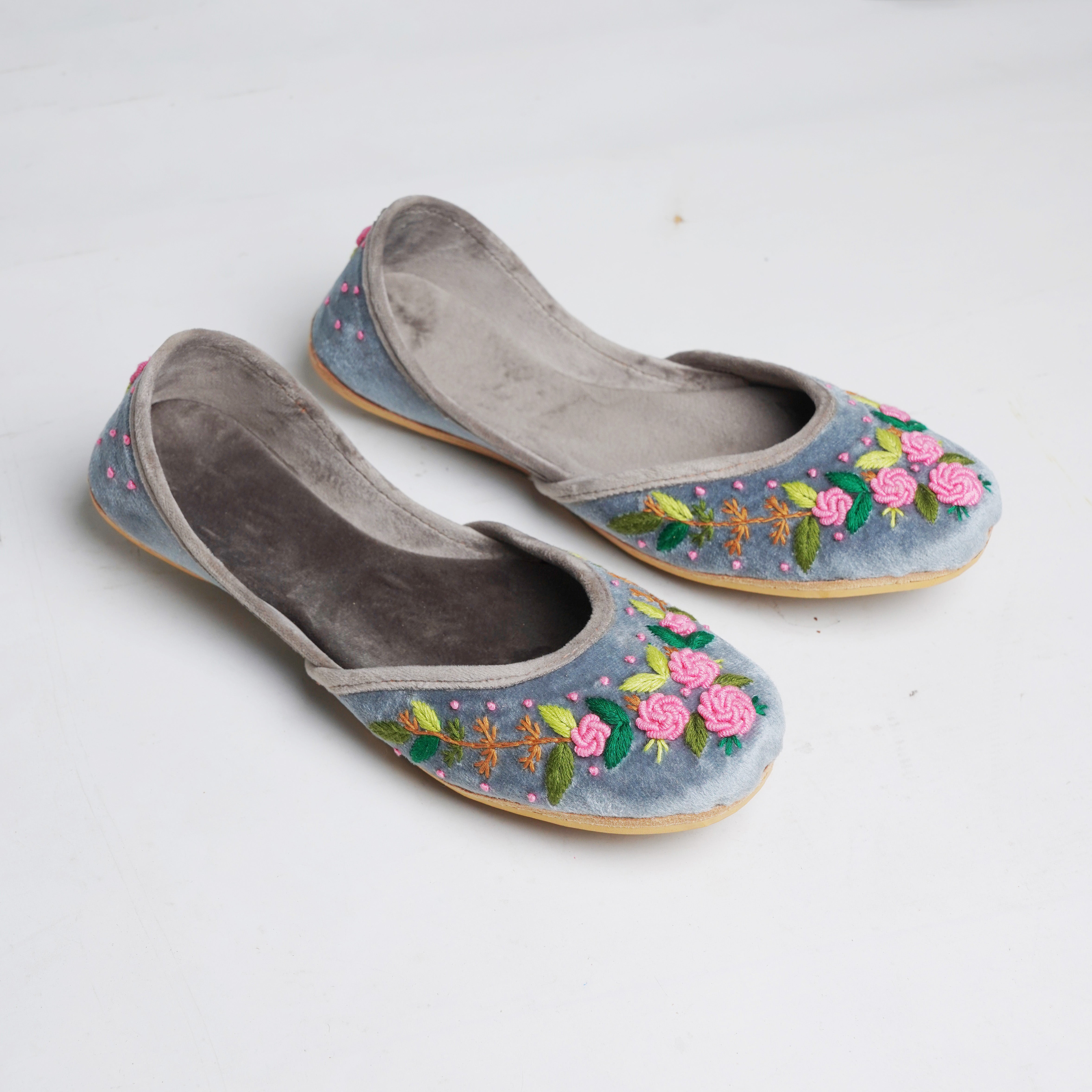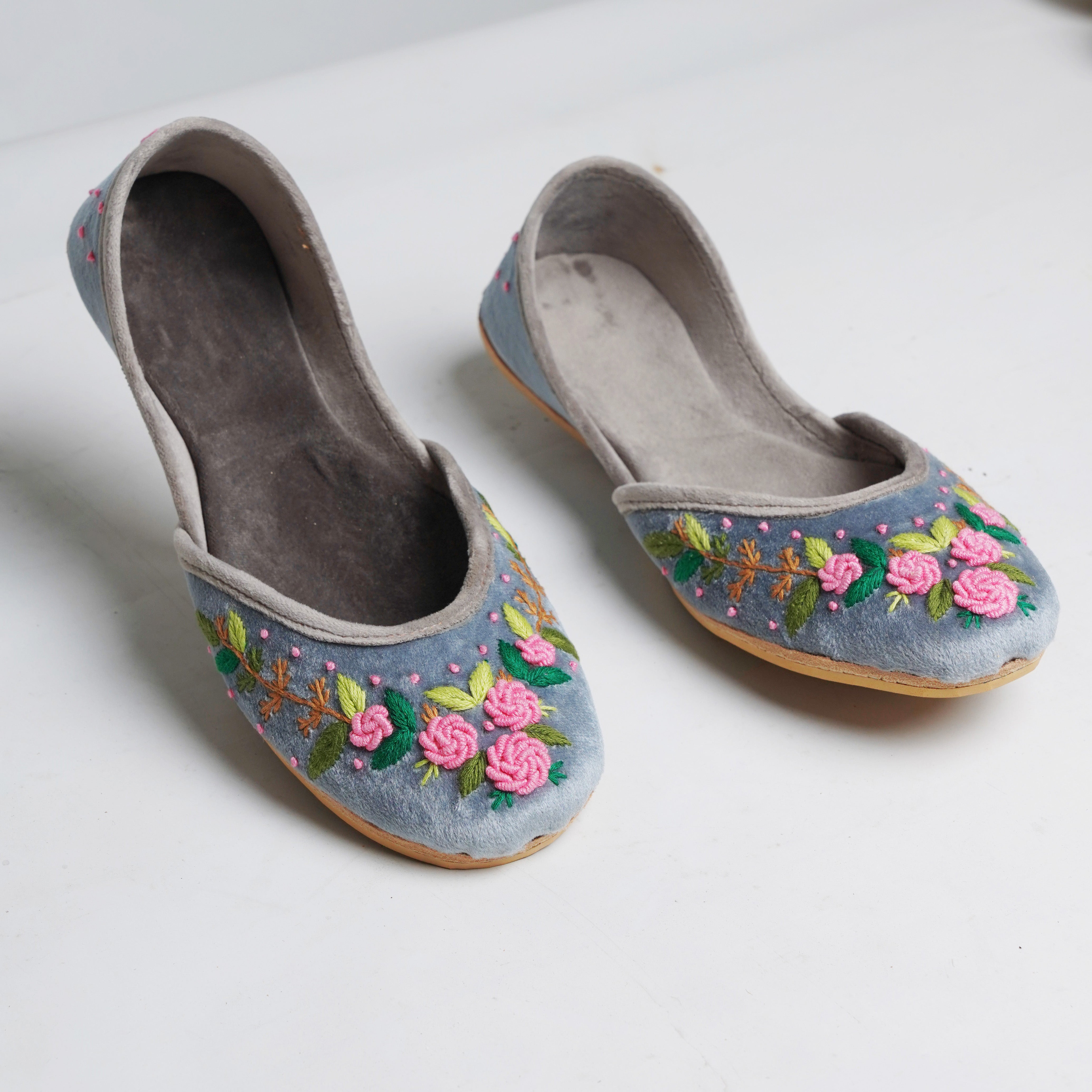 Crafted with top-quality materials, it is designed for all-purpose wear, ideal for any occasion or everyday use. The outsole is fashioned from premium rubber, ensuring not only comfortable walking but also slip resistance, providing added safety and peace of mind. This khussa/ Ballet flat is built to last, fashioned from pure hand processed leather that will withstand the test of time. The inner sole features a luxurious velvet lining, making it incredibly comfortable and snug for your feet.
