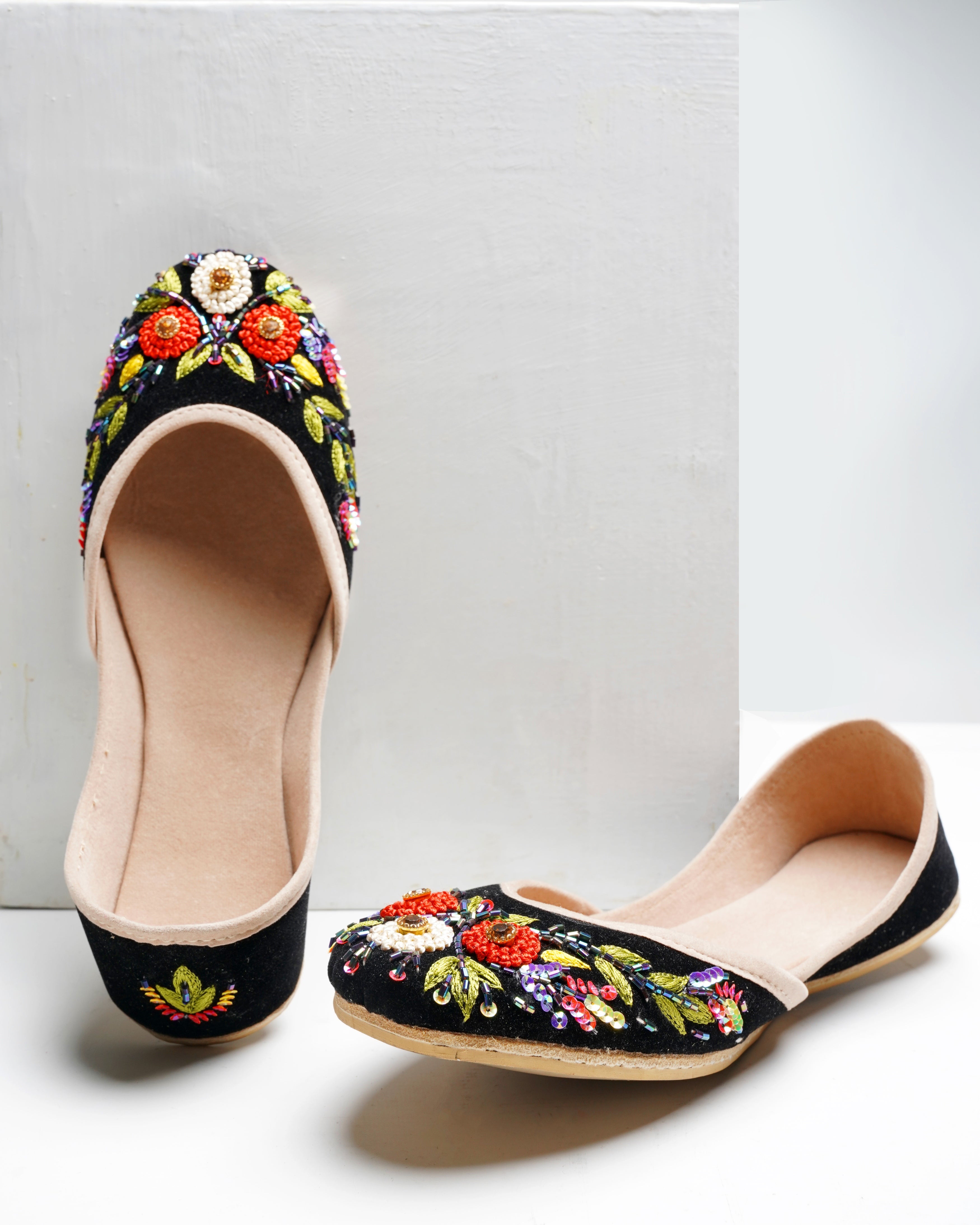 We value your comfort and aim to exceed your expectations in every way possible. Our team spends over 40 hours in designing and hand-making /Ballet Flat/Khussas for you to wear. Crafted with utmost care and premium materials, our Ballet Flats/khussas ensure a captivating design and superior comfort. The velvet base provides a plush and cozy fit, while the thoughtful construction guarantees a secure and comfortable wearing experience.