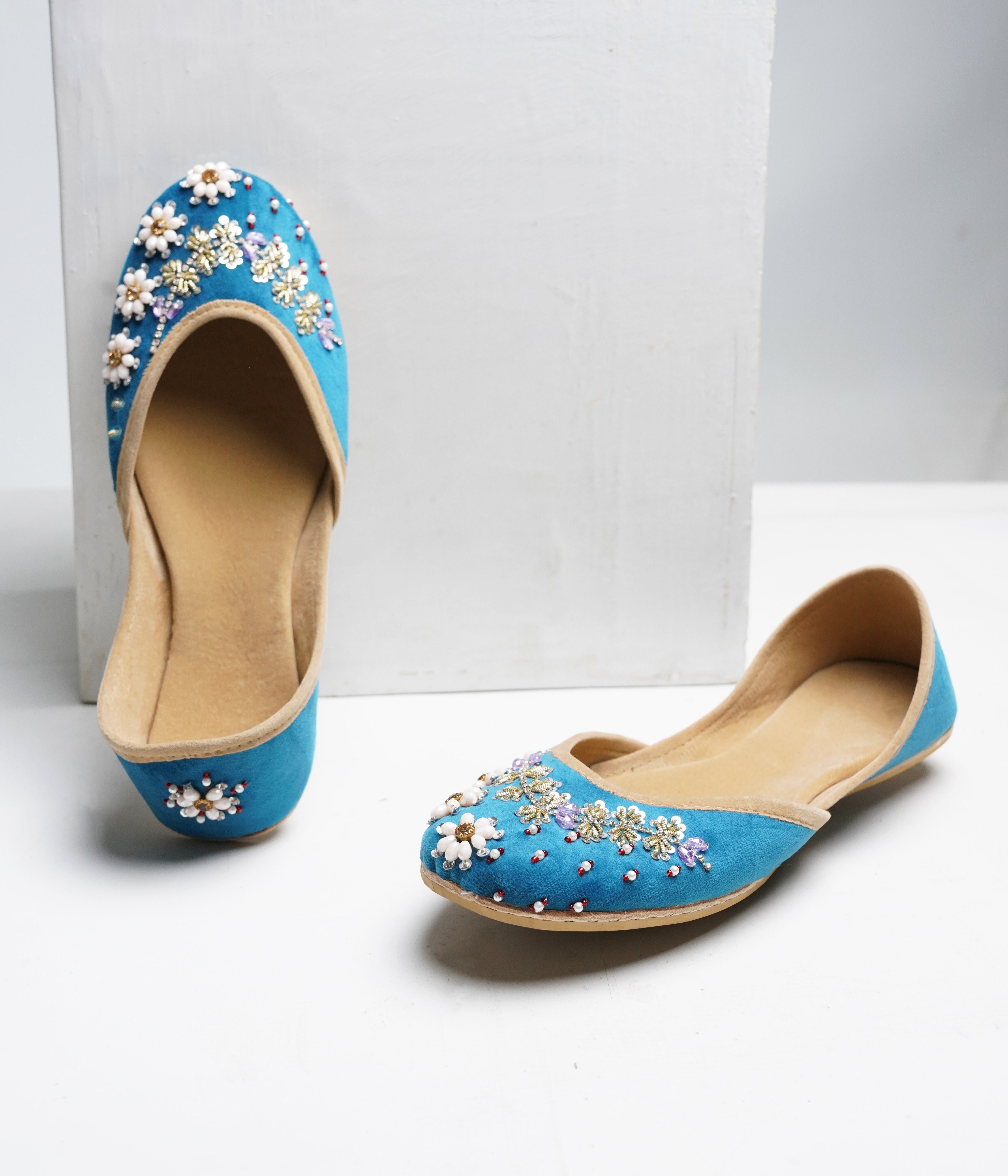 Crafted with top-quality materials, it is designed for all-purpose wear, ideal for any occasion or everyday use. The outsole is fashioned from premium rubber, ensuring not only comfortable walking but also slip resistance, providing added safety and peace of mind. This khussa/ Ballet flat is built to last, fashioned from pure hand processed leather that will withstand the test of time. The inner sole features a luxurious velvet lining, making it incredibly comfortable and snug for your feet.