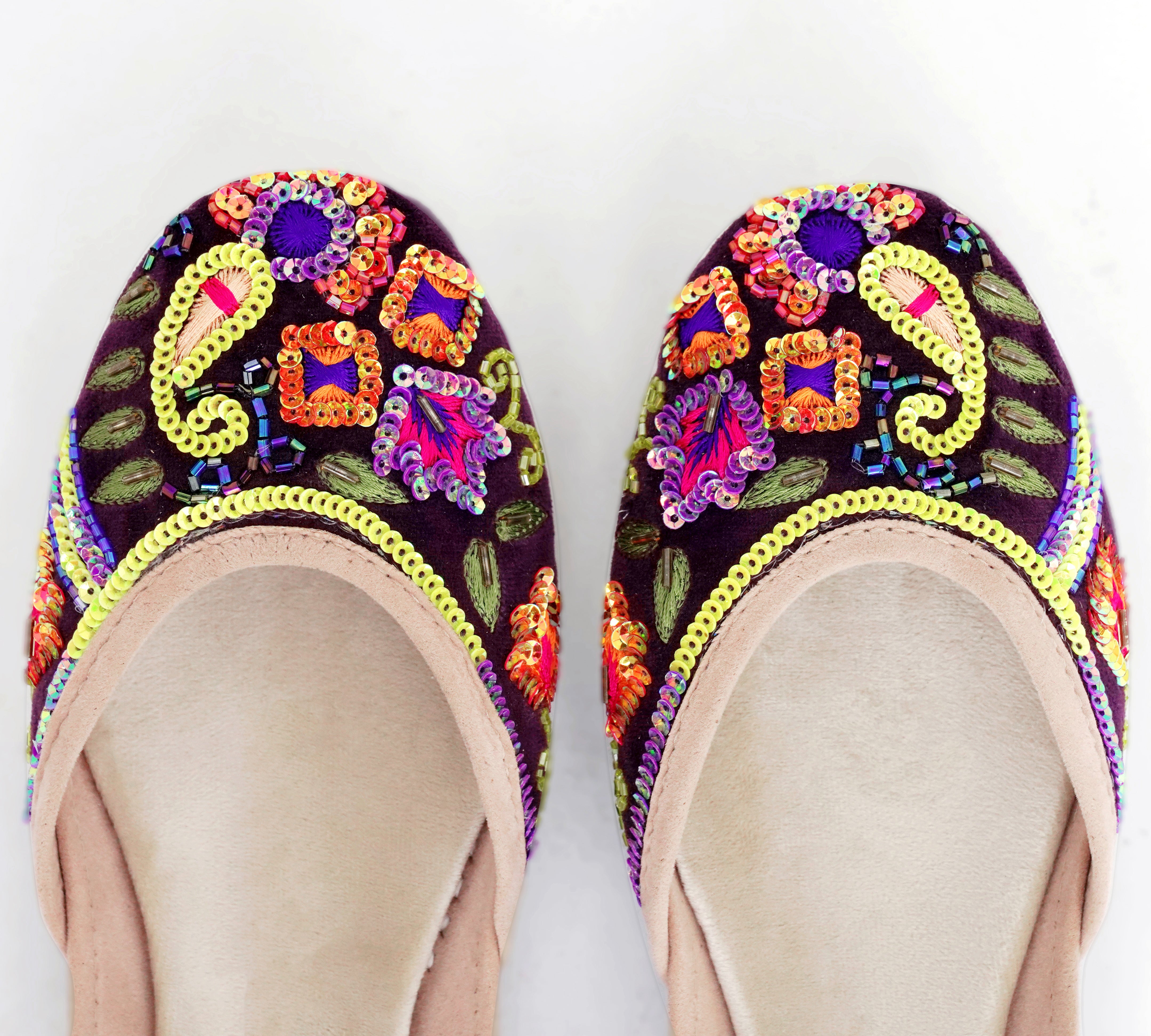 Crafted with top-quality materials, it is designed for all-purpose wear, ideal for any occasion or everyday use. The outsole is fashioned from premium rubber, ensuring not only comfortable walking but also slip resistance, providing added safety and peace of mind. This khussa/ Ballet flat is built to last, fashioned from pure hand processed leather that will withstand the test of time. The inner sole features a luxurious velvet lining, making it incredibly comfortable and snug for your feet.