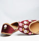 The traditional red velvet khussa adorned with hand-stitched gold embroidery is a magnificent piece that epitomizes the rich cultural heritage and elegance of South Asian craftsmanship. Khussa, a renowned traditional footwear, is cherished for its regal appearance and unmatched comfort. The rich, deep red velvet serves as the luxurious foundation of this exquisite khussa. The velvety texture exudes opulence and warmth, evoking a sense of grandeur and celebration. This captivating red hue symbolizes passion, love, and joy, making it a perfect choice for special occasions and festive gatherings. The true allure of this khussa lies in its meticulously hand-stitched gold embroidery. The skilled artisans have intricately woven a tapestry of delicate patterns and ornate motifs using shimmering gold threads. The golden embroidery beautifully contrasts against the vibrant red backdrop, creating its captivating presence.