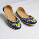 Intricate thread embroidery, fashioned from a spectrum of different colors, conjures up a floral pattern that weaves around the deep blue valvet base of the khussa. Fine dabka and knot embroidery elements dot the pattern and subtly enhance it. Mehr-O-Mah is the perfect khussa to be coupled with a soft, pastel outfit, to bring out the rich contrast. It’s like a halo of spun gold, incandescent with a love for life and pleasure. Mehr-O-Mah is Meticulously crafted by skilled artisans, and requires hours of expert workmanship to create. From selecting the finest quality leather to adding intricate designs and embellishments, every step in the process is a testament to the artisan's dedication to excellence.