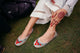 You won’t have to look closely for the details! It’s right in front of you, beautiful and bold, opulent and composed. Red Roses delicately hand embroidered with the finest threads on a raw patch carefully stitched over a royally white base. Intricate lustrous handwork at the back seals the deal for this pair. Red Rose is a unique masterpiece that requires hours of expert workmanship to create. From the meticulous hand-sewing of intricate designs to the addition of beautiful embellishments, every detail is a testament to the artisan's passion for perfection. With their luxurious feel and stunning appearance, Red Rose is a must-have for anyone who appreciates the beauty of traditional craftsmanship.