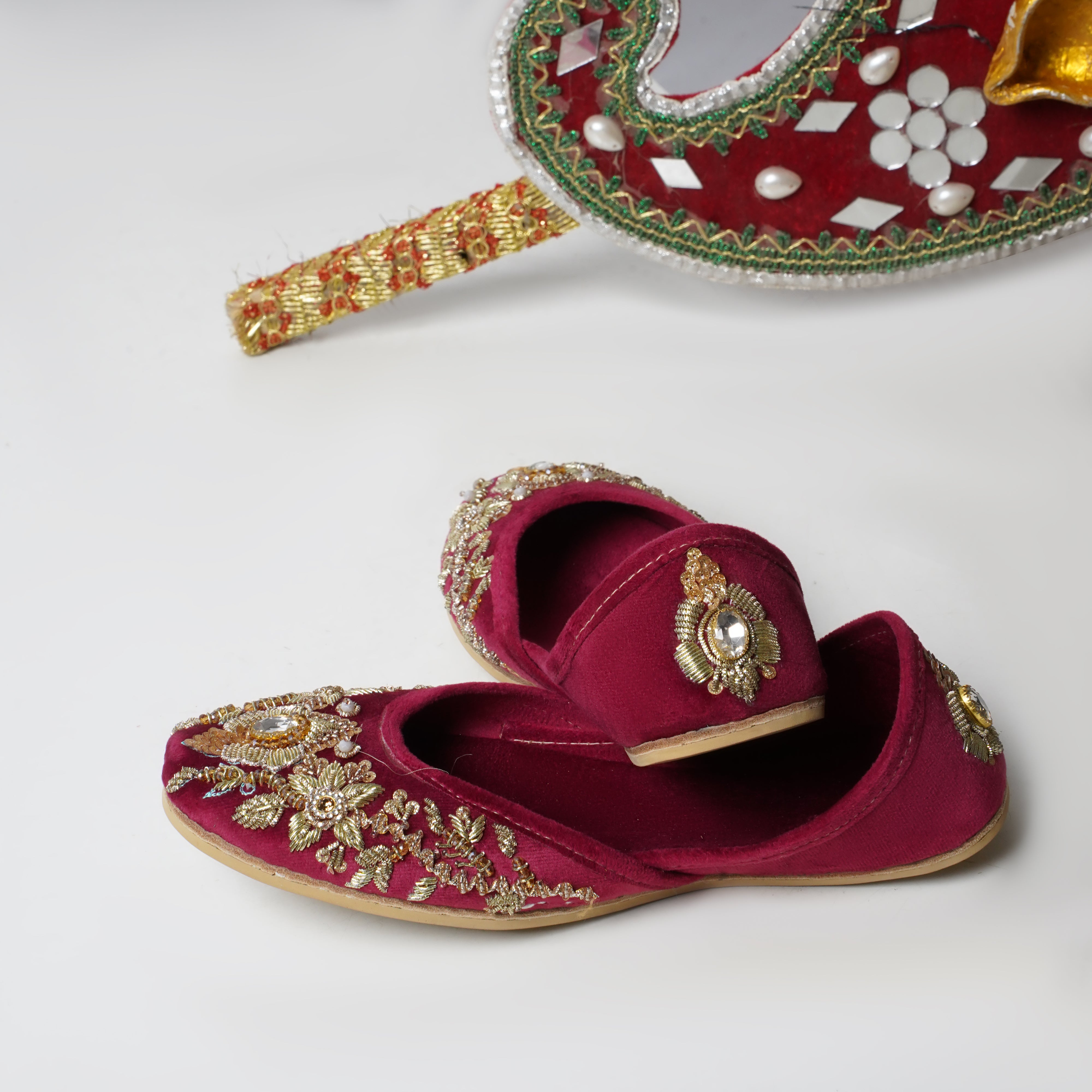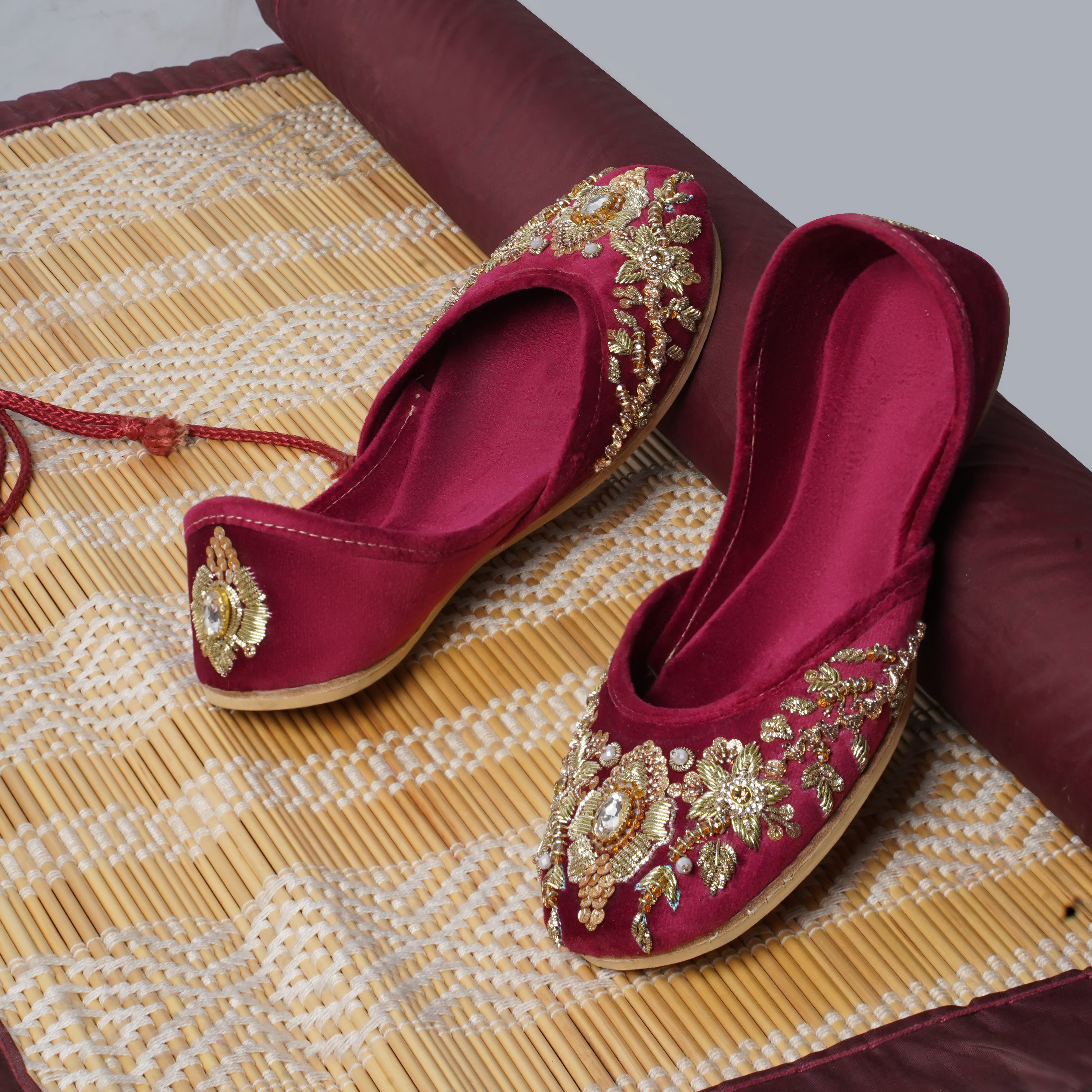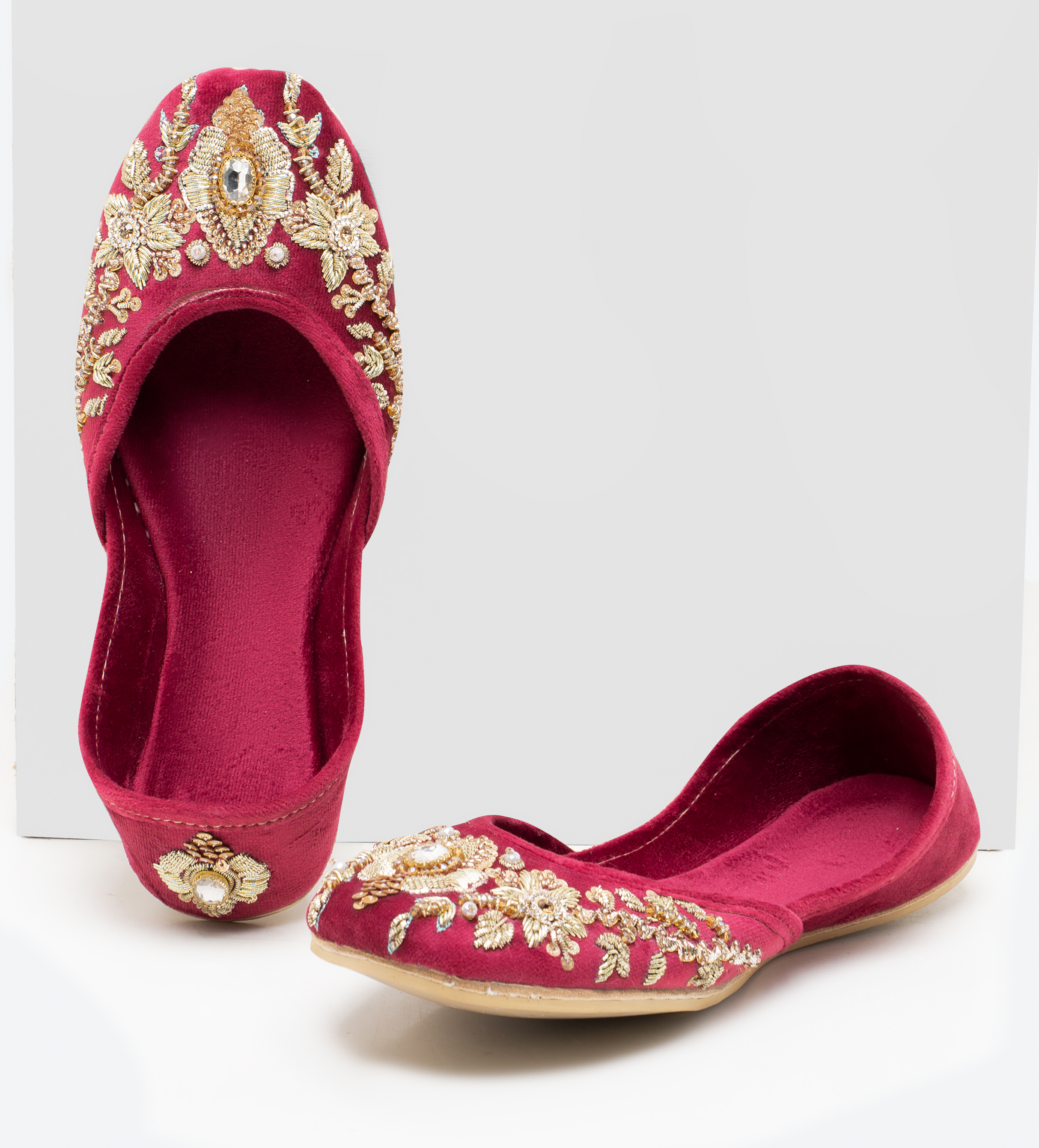 Crafted with top-quality materials, it is designed for all-purpose wear, ideal for any occasion or everyday use. The outsole is fashioned from premium rubber, ensuring not only comfortable walking but also slip resistance, providing added safety and peace of mind. This khussa/ Ballet flat is built to last, fashioned from pure hand processed leather that will withstand the test of time. The inner sole features a luxurious velvet lining, making it incredibly comfortable and snug for your feet.