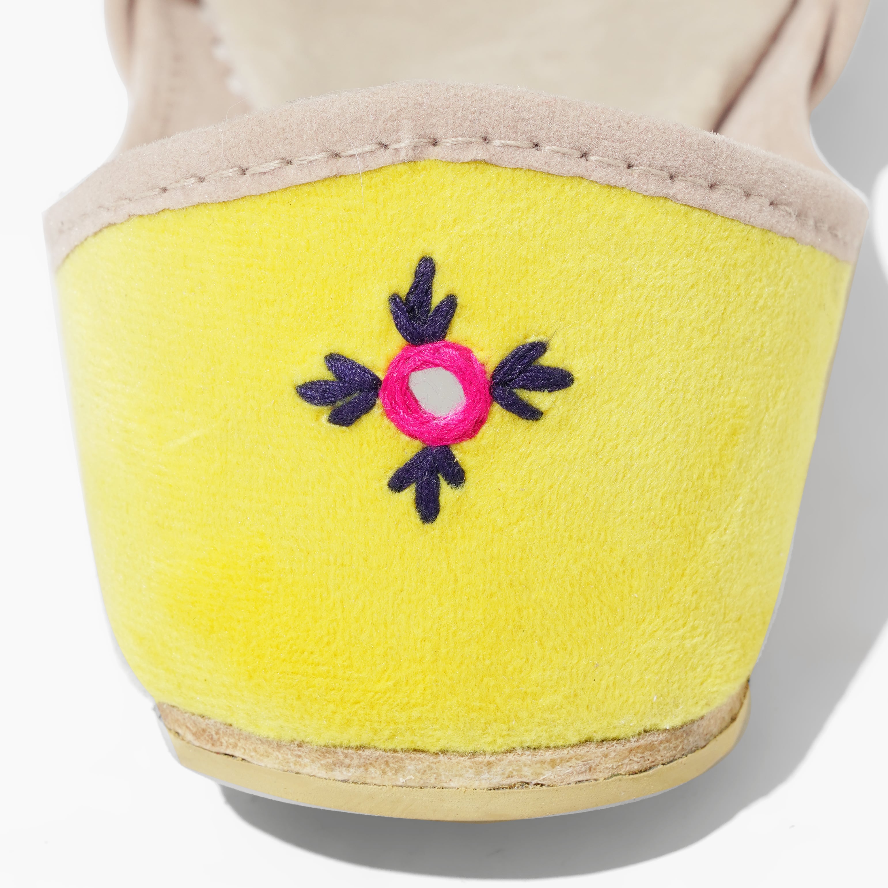 Basanti is a festive inspired rajashtani Khussa. It is an explosion of colors and radiates happy vibes. Basanti is the perfect choice for a day where you need something to brighten up your day. From colorful embroidery in orange, blue, green and pink adorned to mirror work. With over 40 hours of craftsmen-ship Basanti goes all out on making an impact.