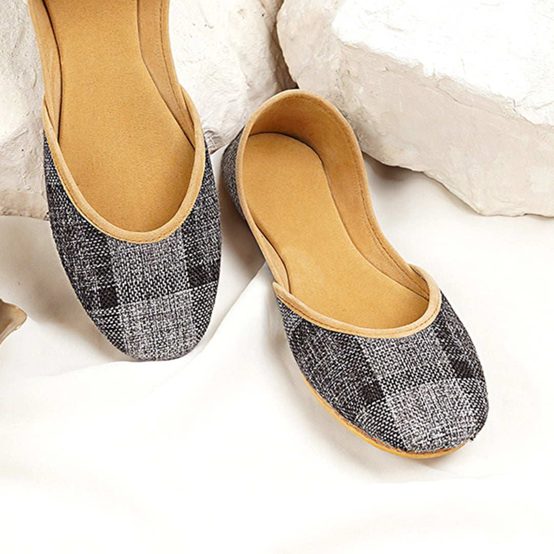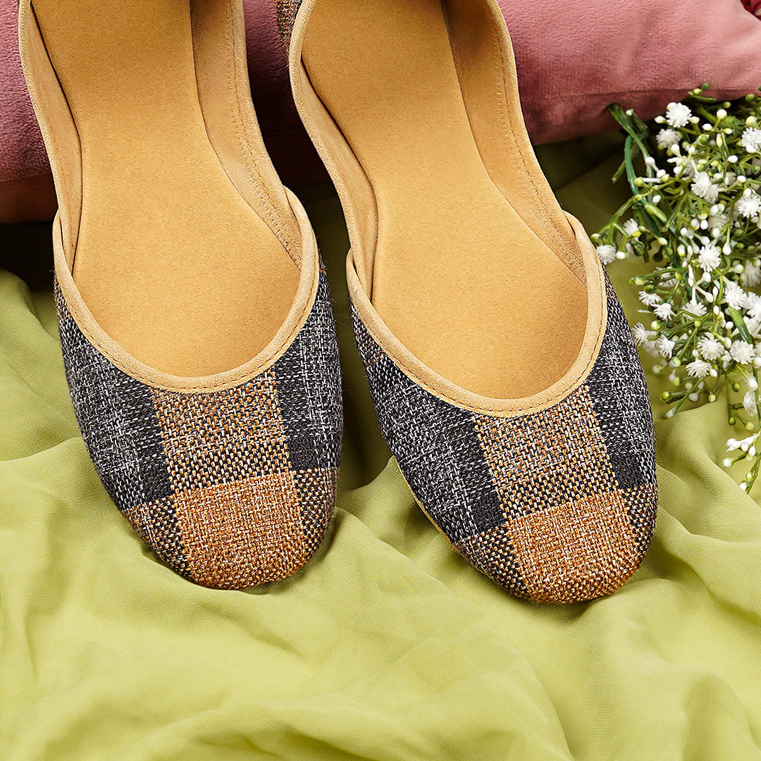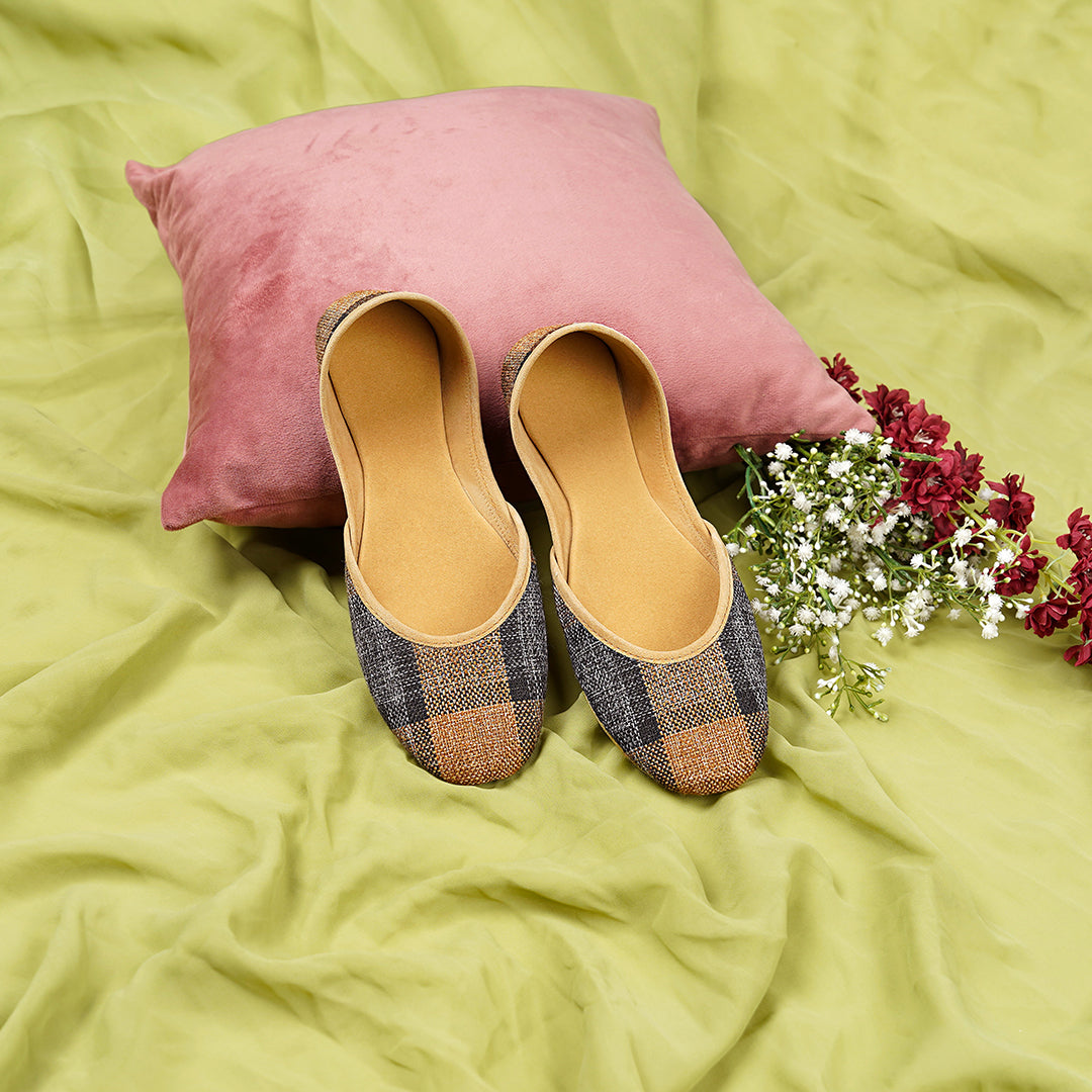 This khussa is a perfect blend of traditional craftsmanship and modern comfort. Designed to offer both style and durability, it features a checkered fabric made from jute—an eco-friendly, sustainable material. With a soft sole and an innovative 8-layered construction, this footwear provides both aesthetic appeal and long-lasting comfort, ideal for casual wear or light formal