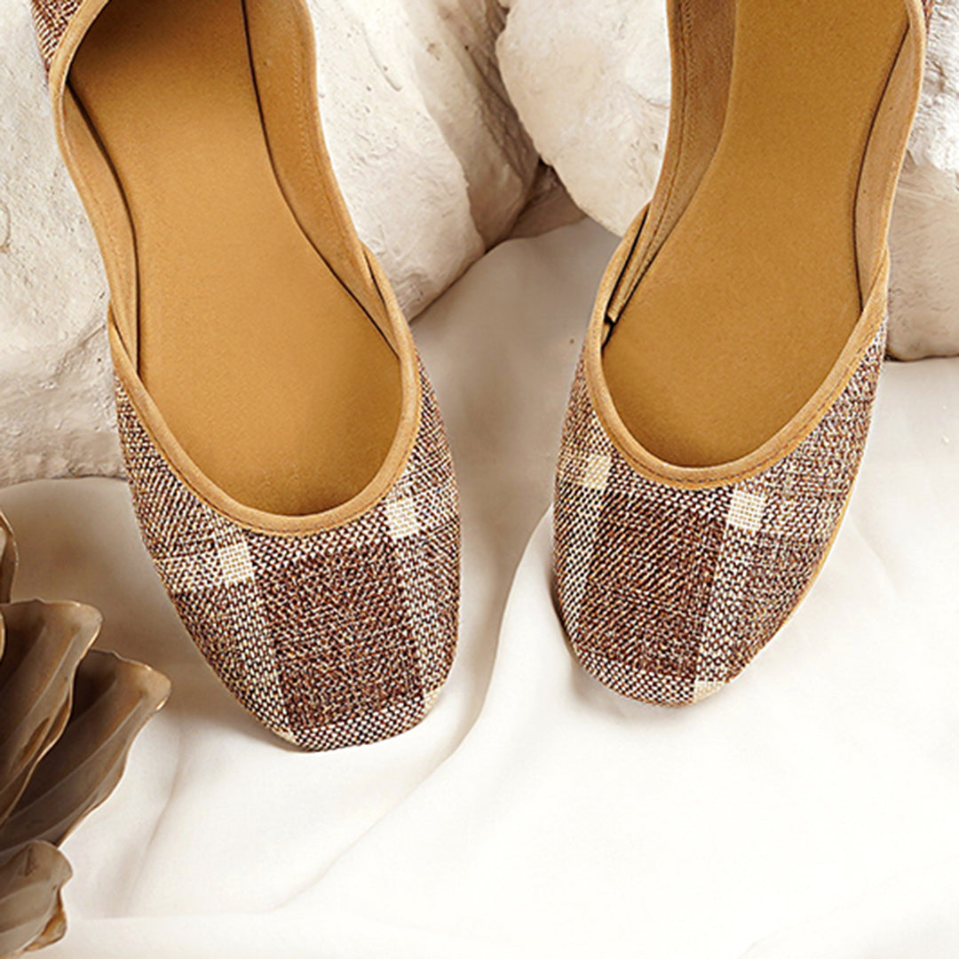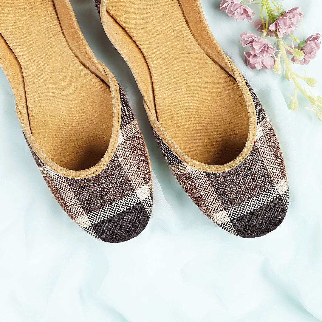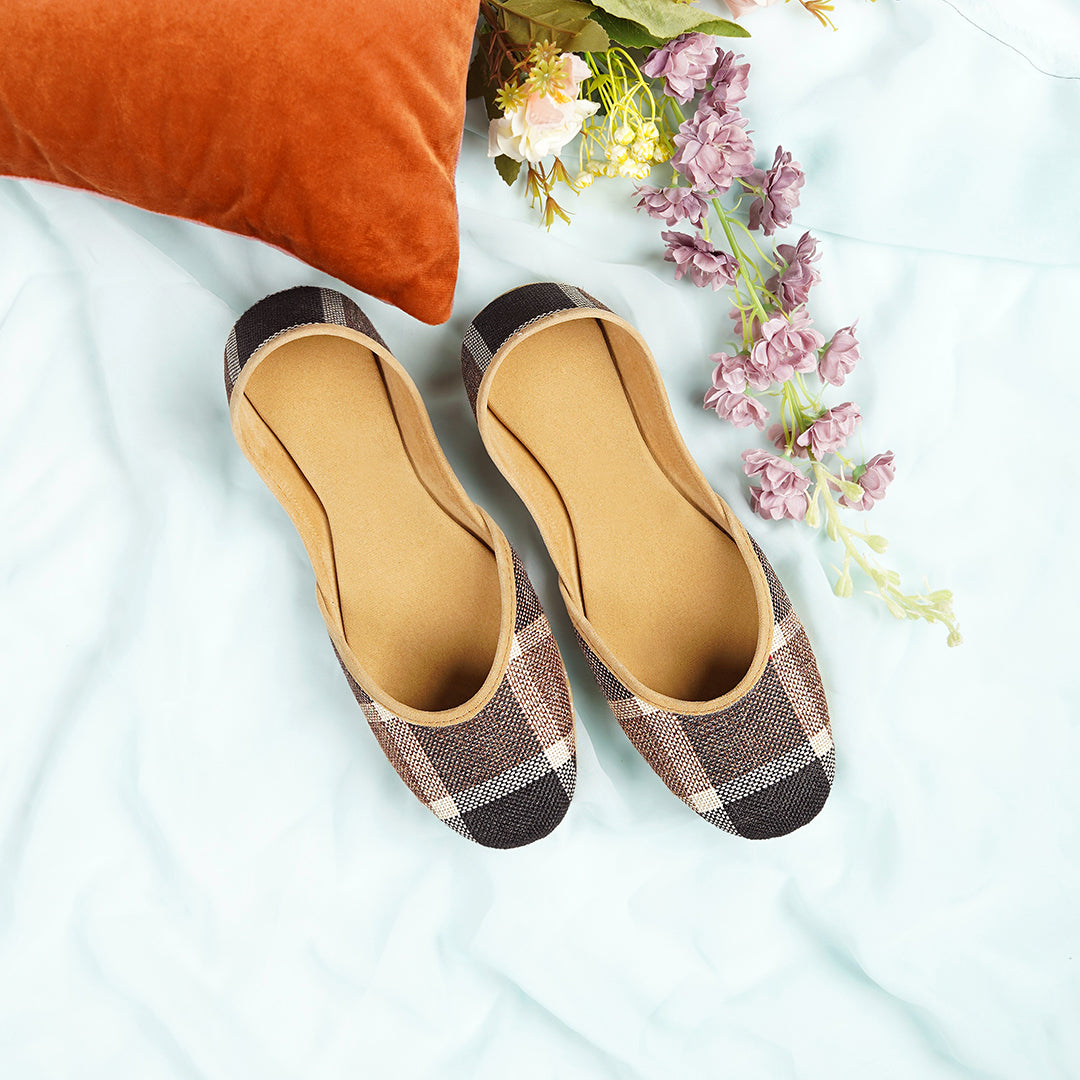 This khussa is a perfect blend of traditional craftsmanship and modern comfort. Designed to offer both style and durability, it features a checkered fabric made from jute—an eco-friendly, sustainable material. With a soft sole and an innovative 8-layered construction, this footwear provides both aesthetic appeal and long-lasting comfort, ideal for casual wear or light formal