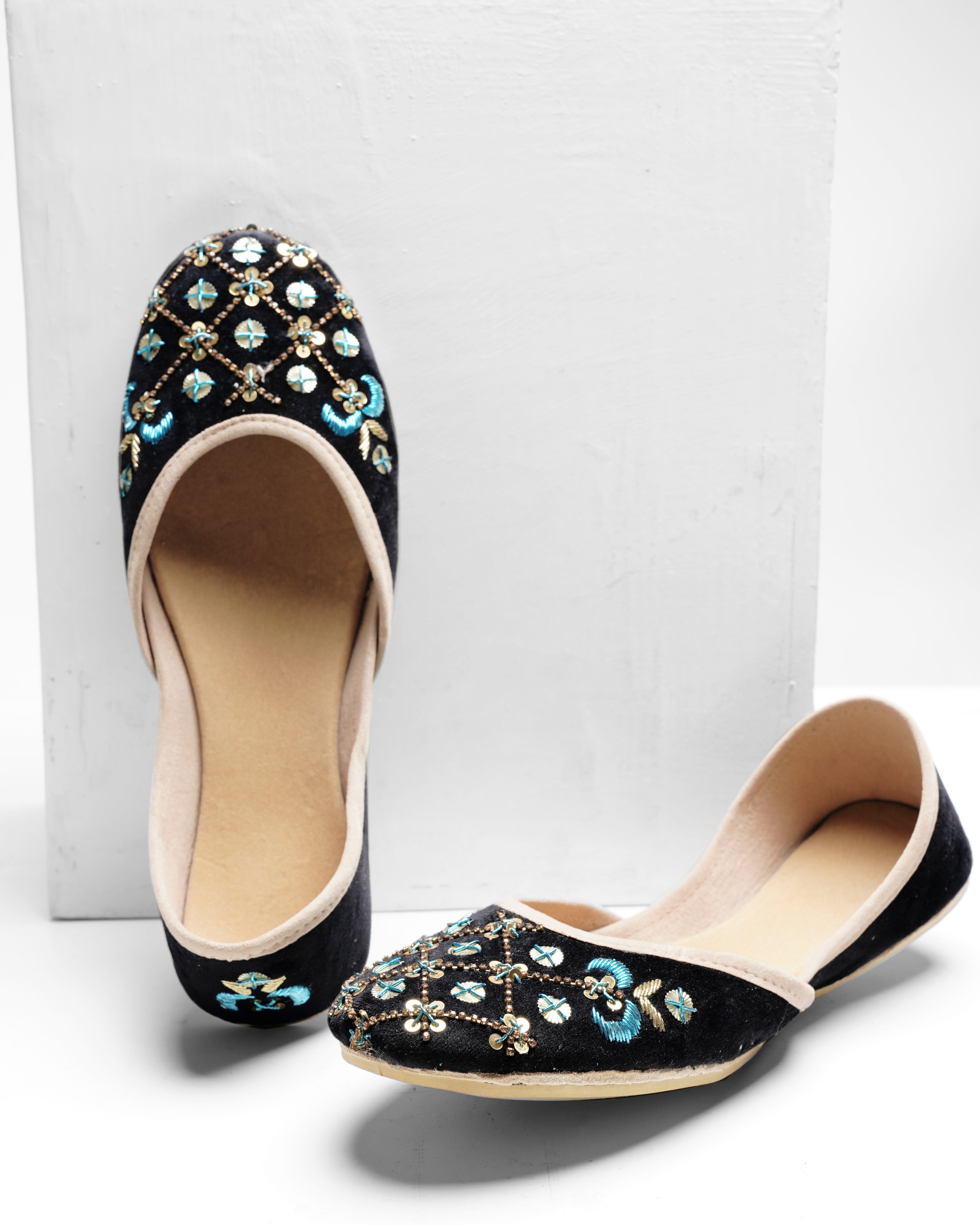 We value your comfort and aim to exceed your expectations in every way possible. Our team spends over 40 hours in designing and hand-making /Ballet Flat/Khussas for you to wear. Crafted with utmost care and premium materials, our Ballet Flats/khussas ensure a captivating design and superior comfort. The velvet base provides a plush and cozy fit, while the thoughtful construction guarantees a secure and comfortable wearing experience.
