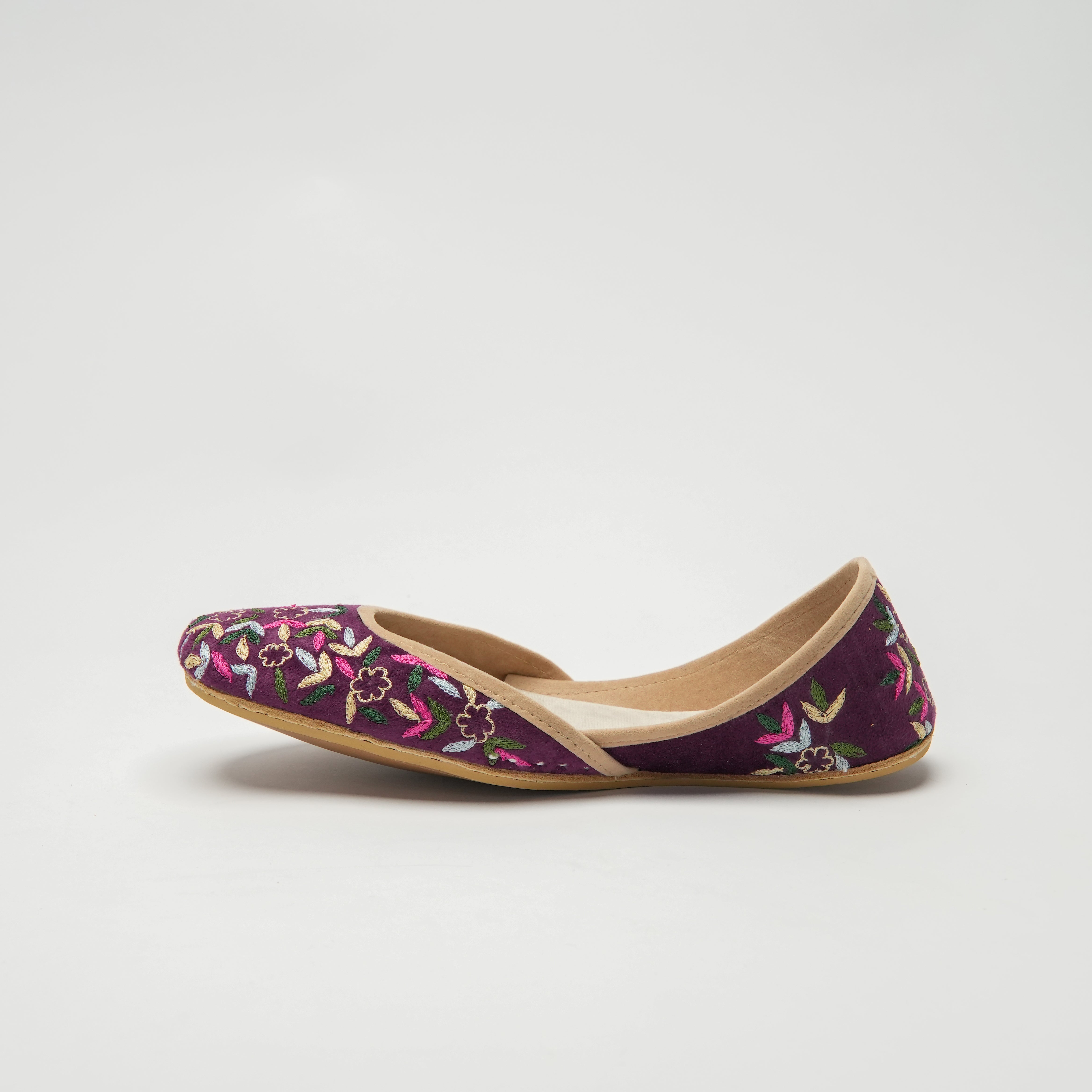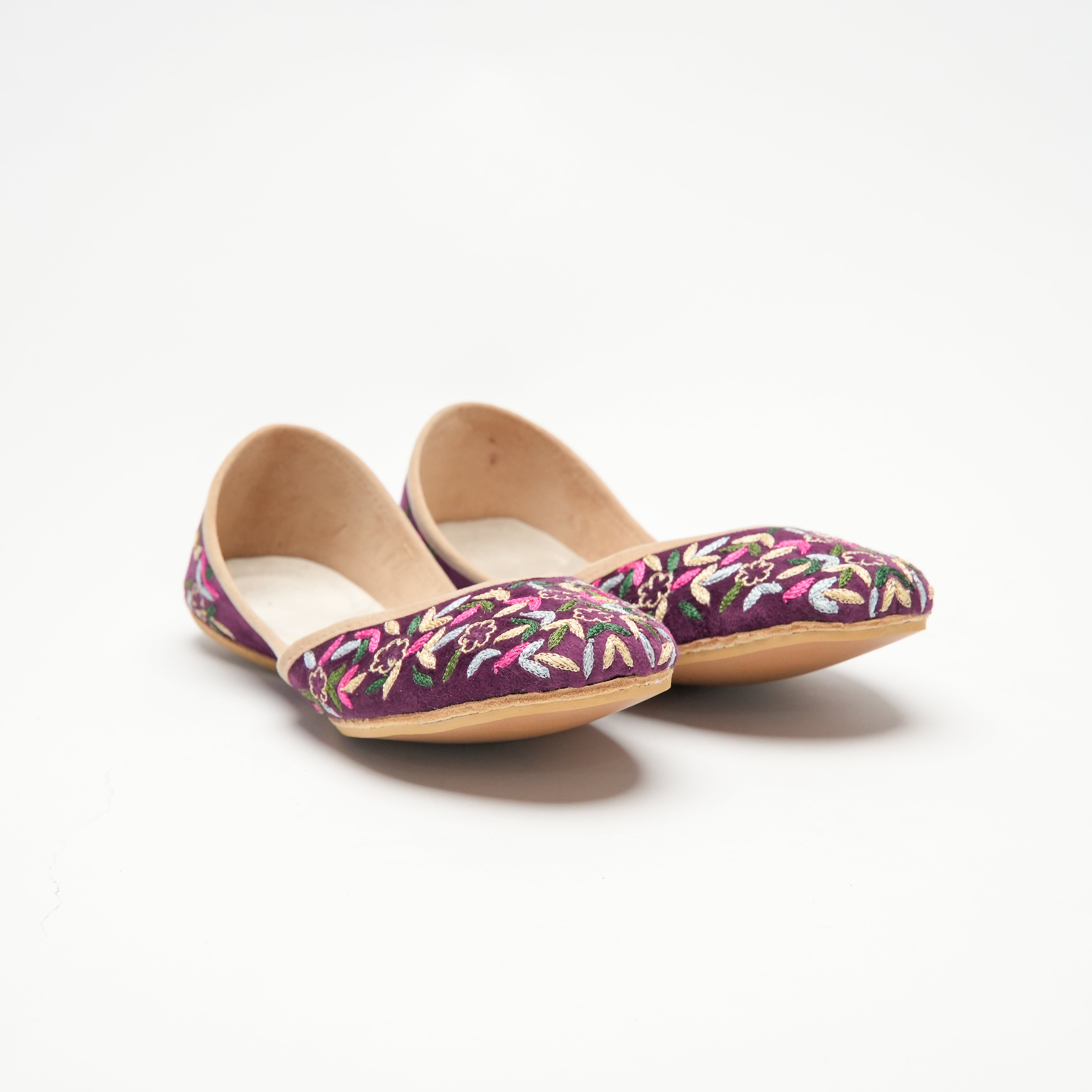 Crafted with top-quality materials, it is designed for all-purpose wear, ideal for any occasion or everyday use. The outsole is fashioned from premium rubber, ensuring not only comfortable walking but also slip resistance, providing added safety and peace of mind. This khussa/ Ballet flat is built to last, fashioned from pure hand processed leather that will withstand the test of time. The inner sole features a luxurious velvet lining, making it incredibly comfortable and snug for your feet.